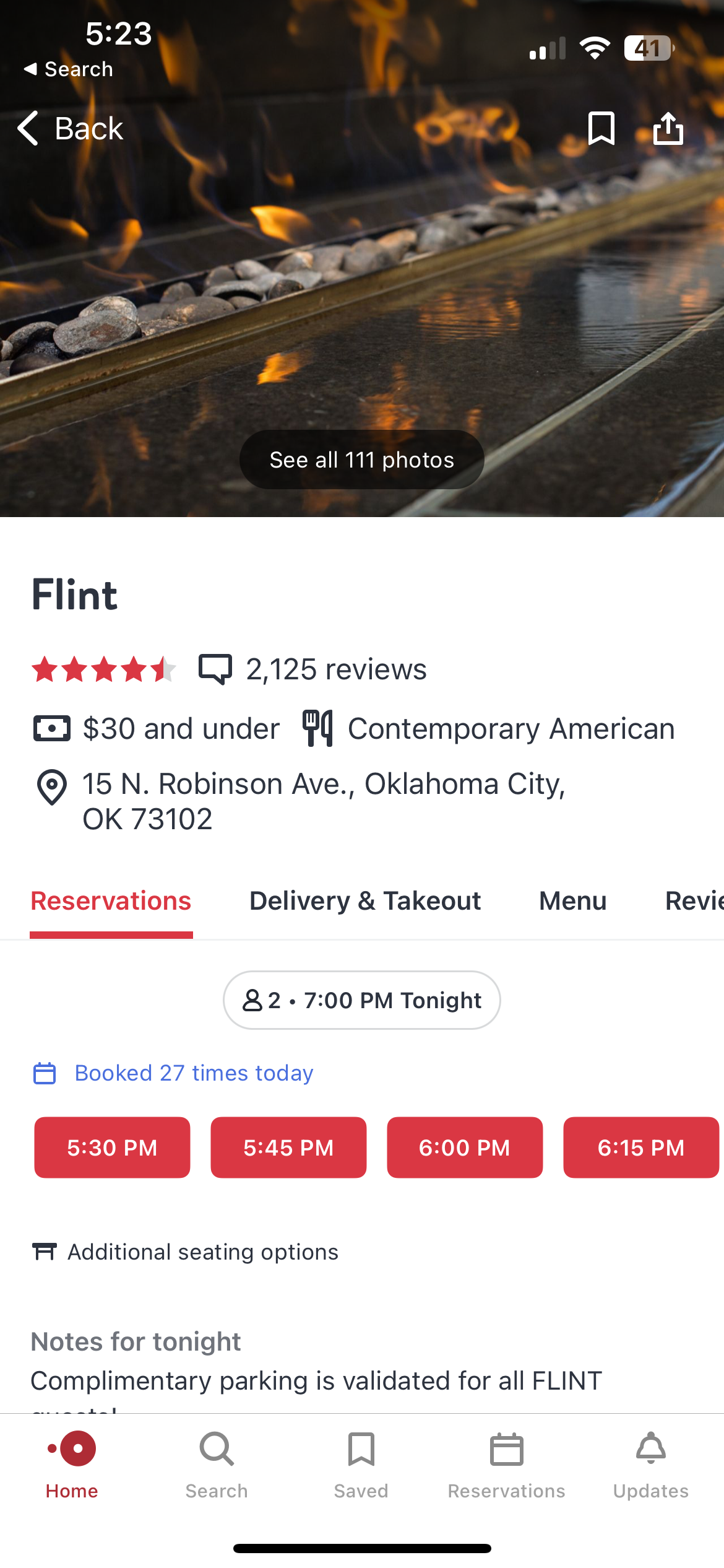 I liked the contrast between an image and a solid color block, so, I kept it when adding the map and location information. Scrolling down the page, I think this breaks up each section nicely and makes them stand out. From there, I moved on to the reservation page, where I took a lot of inspiration from reservation apps like OpenTable. I liked seeing the times available but thought it would work better for my app if they were all visible at once, with the times changing based on the party size and date.