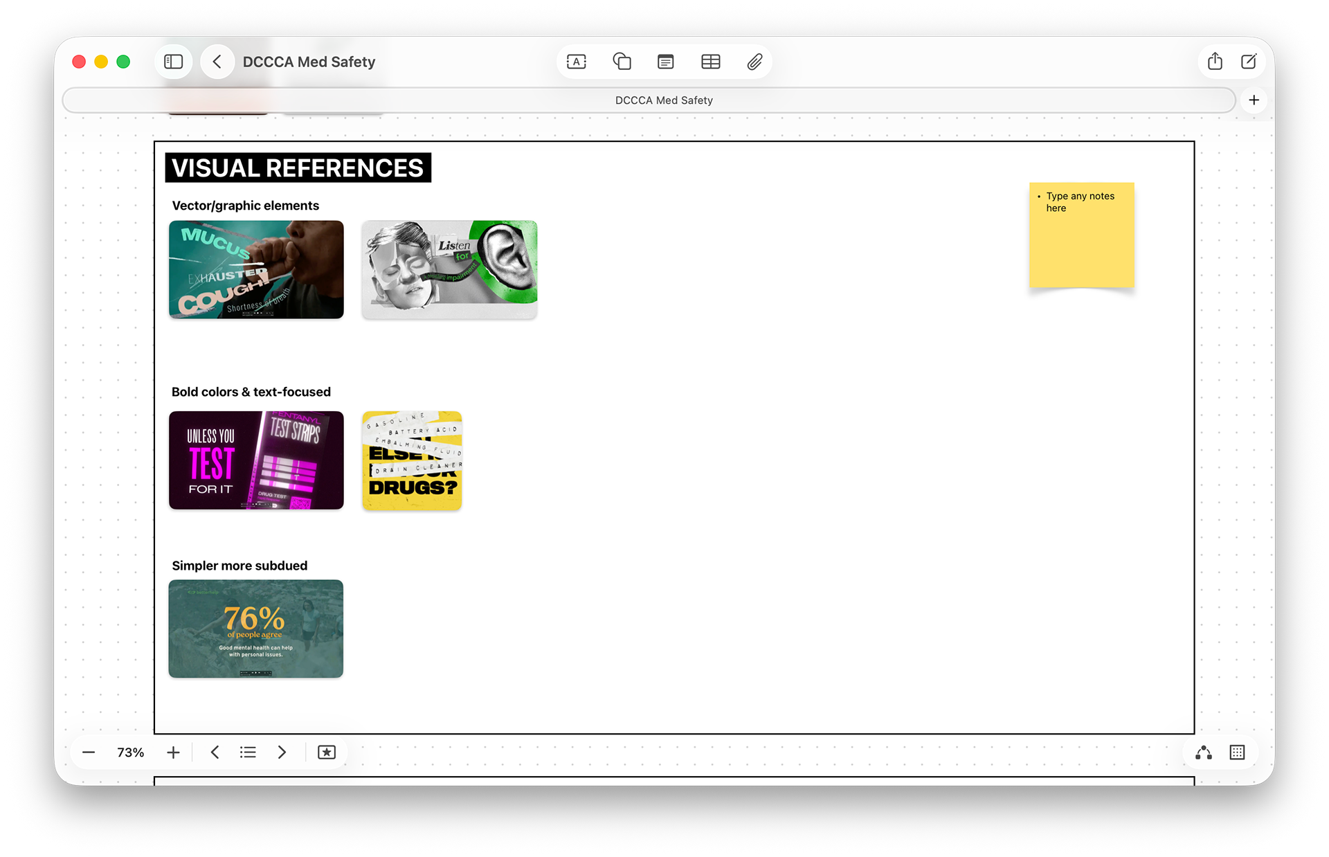 The client had an established brand but didn't need the PSA to strictly follow it, so I was given a lot of freedom in where to go with this project. I started by studying other work in the medical/healthcare field to find some common trends.